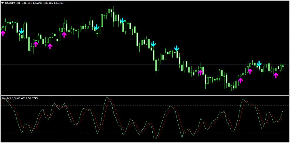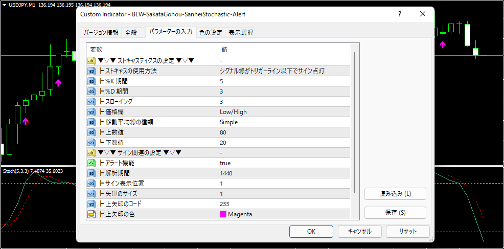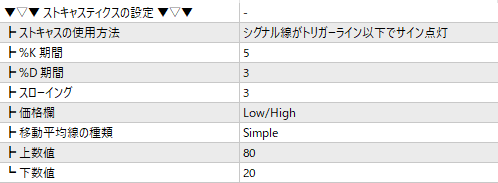 MT4に標準装備されているストキャスと数値等は合わせています。