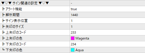 [サイン表示位置]ローソク足から矢印までの距離です。離したい場合は数値を大きくしてください。